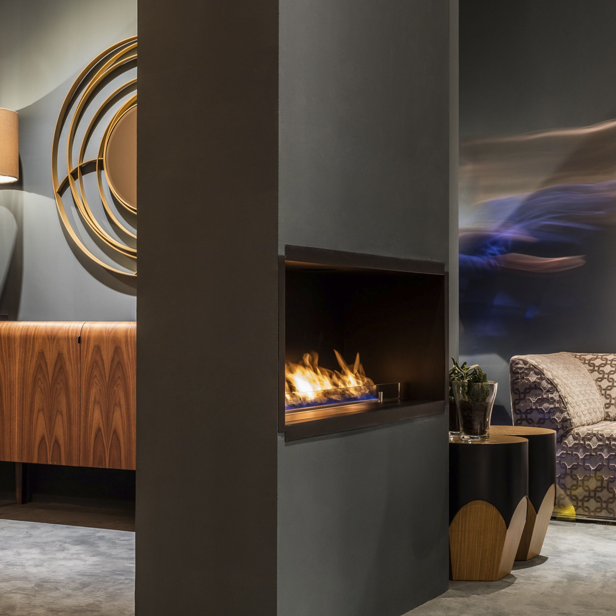 - Индикация уровня топлива и высоты пламени, отображаемая на дисплее управления биокамином или на смартфоне.